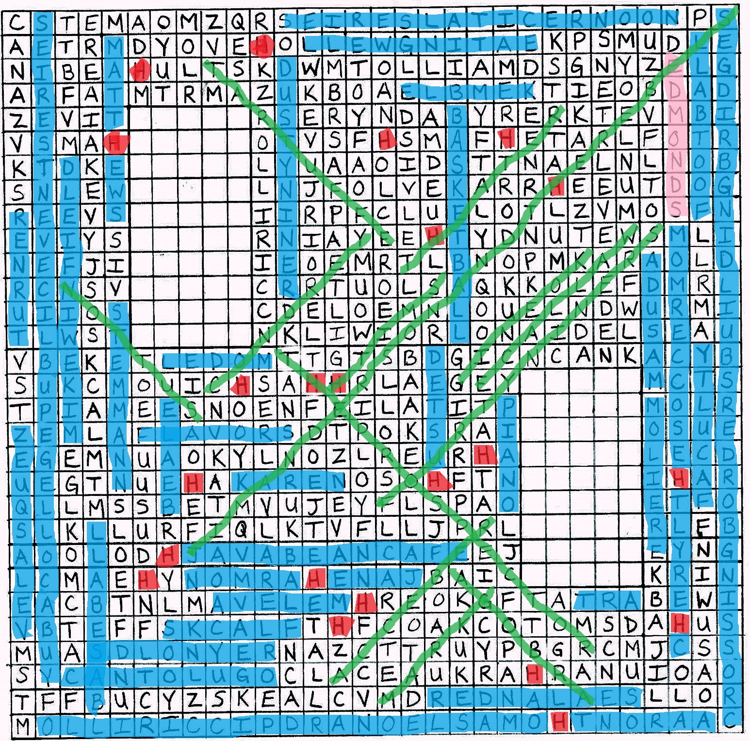 Second, “Harmony Health” is not in the puzzle. I intended to include it beginning with “Jane Harmon,” but decided it was too unfair to use six letters between two words, and having already crossed it off of my design list, I forgot to move it elsewhere in the puzzle. I highlighted all of the “H’s” in red in case I missed it. I hope you enjoyed this word search even with the mistakes.