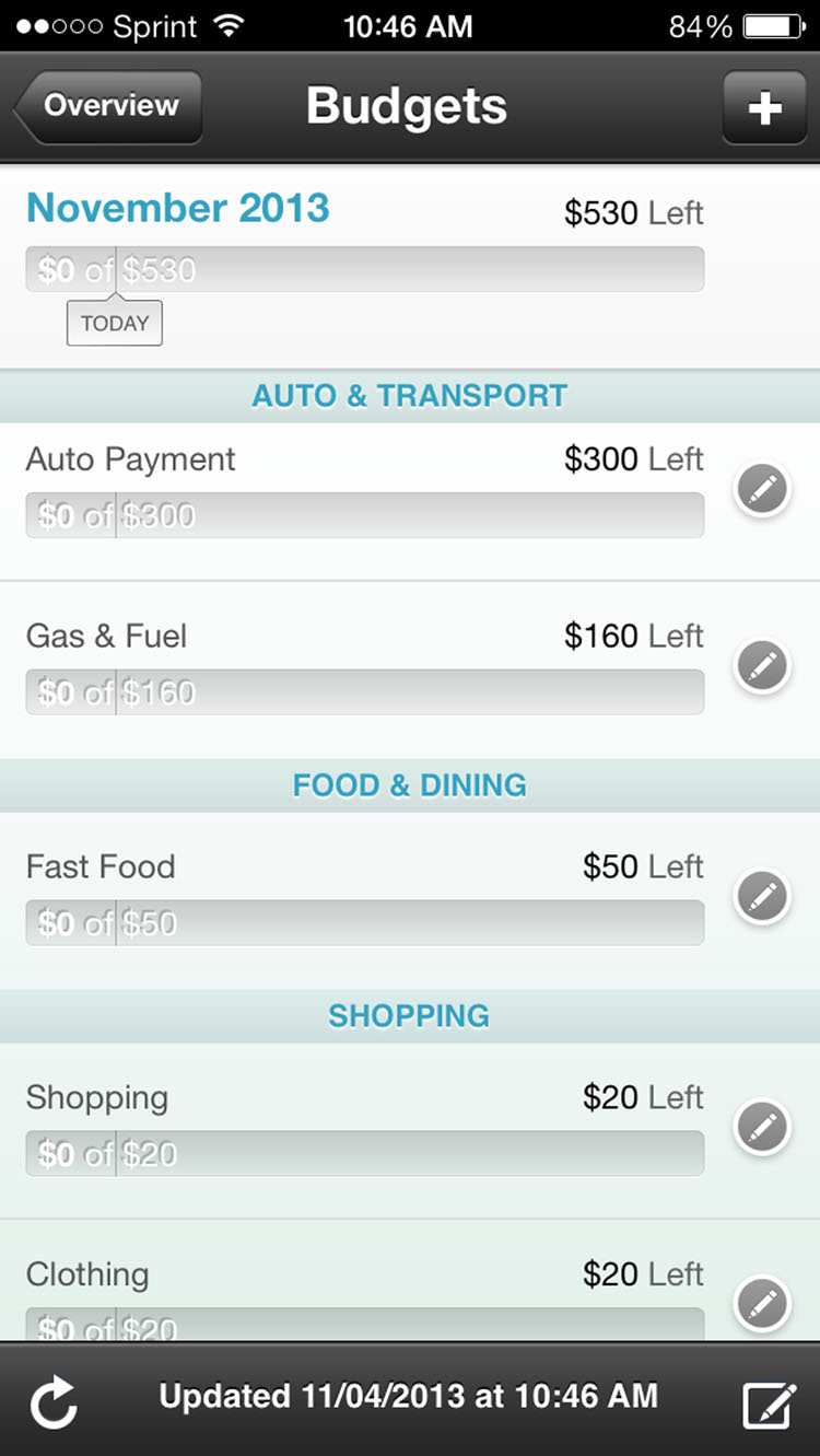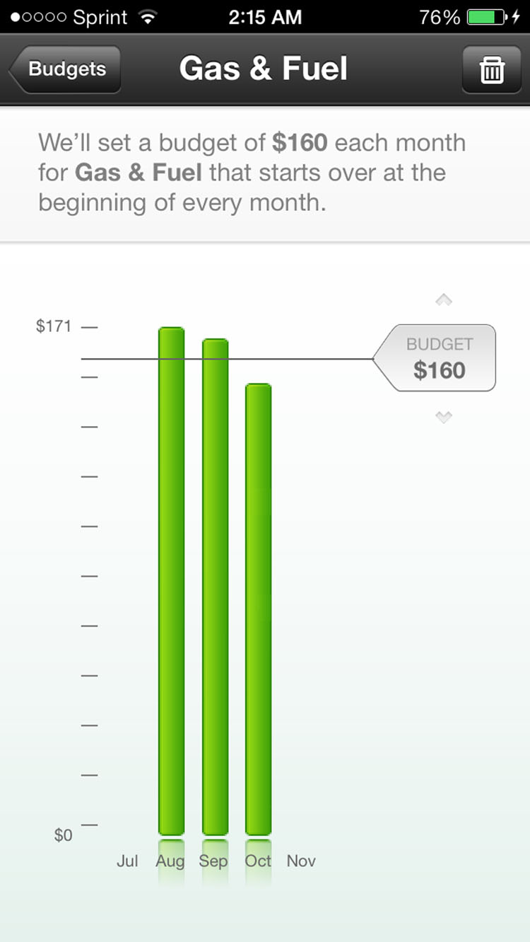 Of the apps tested, the extremely helpful financial planner Mint was my personal favorite. Mint clearly illustrates your expenses and helps you stay on budgets you set. It shows your bank account balance and credit card debt on the home screen, along with your monthly income and expenditures. On the budgets page you can customize categories ranging from public transport to life insurance. You can also see how much you’ve spent on these categories in past months. After a while Mint gives you financial advice, it showed me I spend too much of my paychecks on fast food and clothing, and have since set conservative budgets on both.