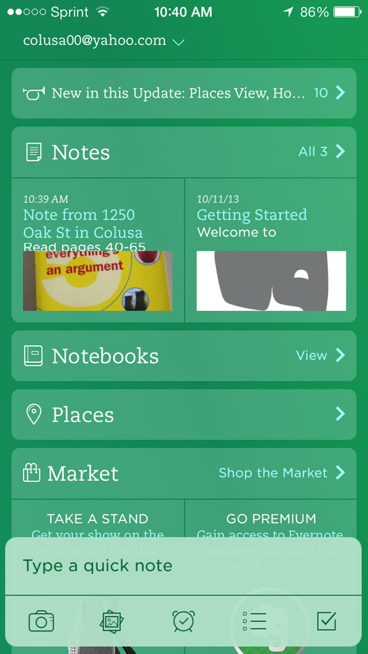 Evernote is the best note taking app available today and is accessible from any phone, laptop, or tablet. This is useful if you remember to take your phone to class more often than your backpack. You can add pictures and voice recordings to the notes, and make helpful checklists for papers and projects. You can also set reminders to remind you of homework or project deadlines. Evernote is free, but for $5 a month you can upgrade to Evernote Premium. With a Premium account you can upload 1GB of data a month (vs. 60MB on the free version) and you can access notes while offline. I would not recommend going premium unless Evernote will be your only note taking source.