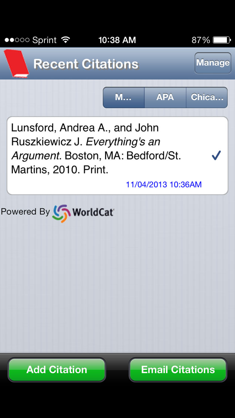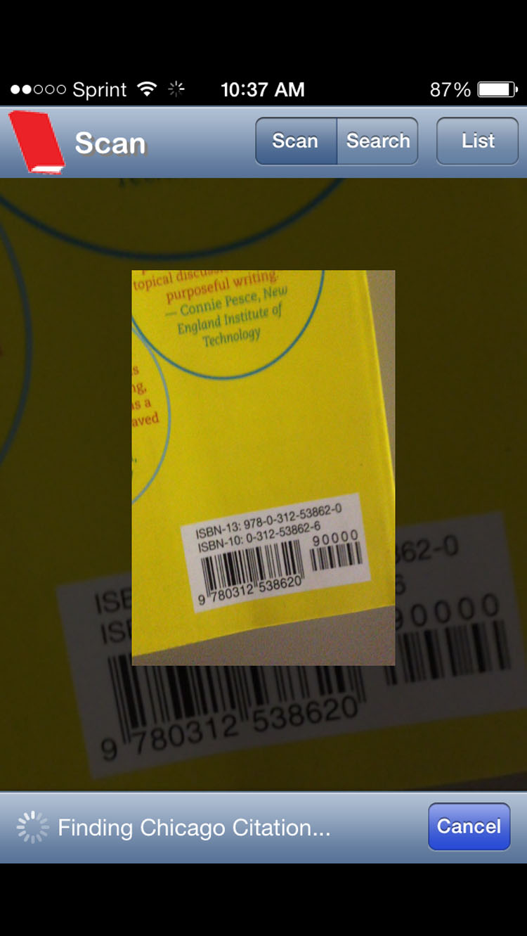 When it’s noon and your 2 o’clock history class has a paper due, the last thing you want to do is waste time making a works cited page. All through high school I used EasyBib.com to make bibliographies quickly, and now they have an app. The app is crazy simple to use, open it up, take a picture of a book’s barcode and select your citation format. If you don’t have your book you can also use the apps search feature. After you create your list you can email it to yourself and finish your paper knowing the works cited page will be correct.