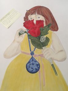 “I didn’t expect to stick with it. I never picked anything up again until fall of 2016.” Since her long break with drawing, she has redeveloped the love of art that she had when she was younger. She especially loves fine arts and has been getting back into it, little by little. As an art major, she likes being able to create in multiple ways and with different medias, and does not like to limit herself to just one.