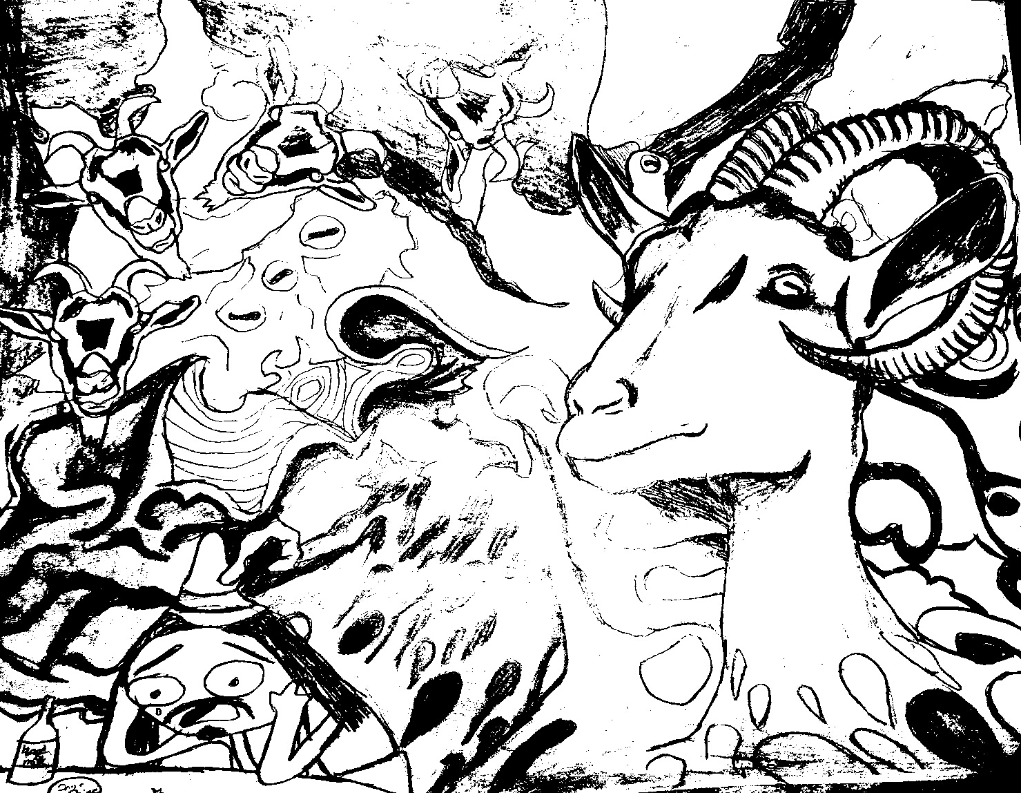 When dawn comes, I leave in secrecy and silence but by consequence, not design, for the goats had eaten my heavy snow boots on the eve of Saint Nicholas of Flüe Day. Miles I trudge through the gloomfrost of deep snow that halted my passage toward a better life of becoming an artisan, but it was not meant to be. Night falls and creepy horned shadows dance and flicker through the dim radiance given by my lantern. I am being watched. Soon, utter darkness enshrouds me, for the witching hour is near. Quickly, they come rushing through the dark, riding on the hooves of hell while shrieking hoarsely in the night. Demon goats were soon upon me with flame on their clacking and galloping clove… I have been delivered into the coven of The Black Hoof!