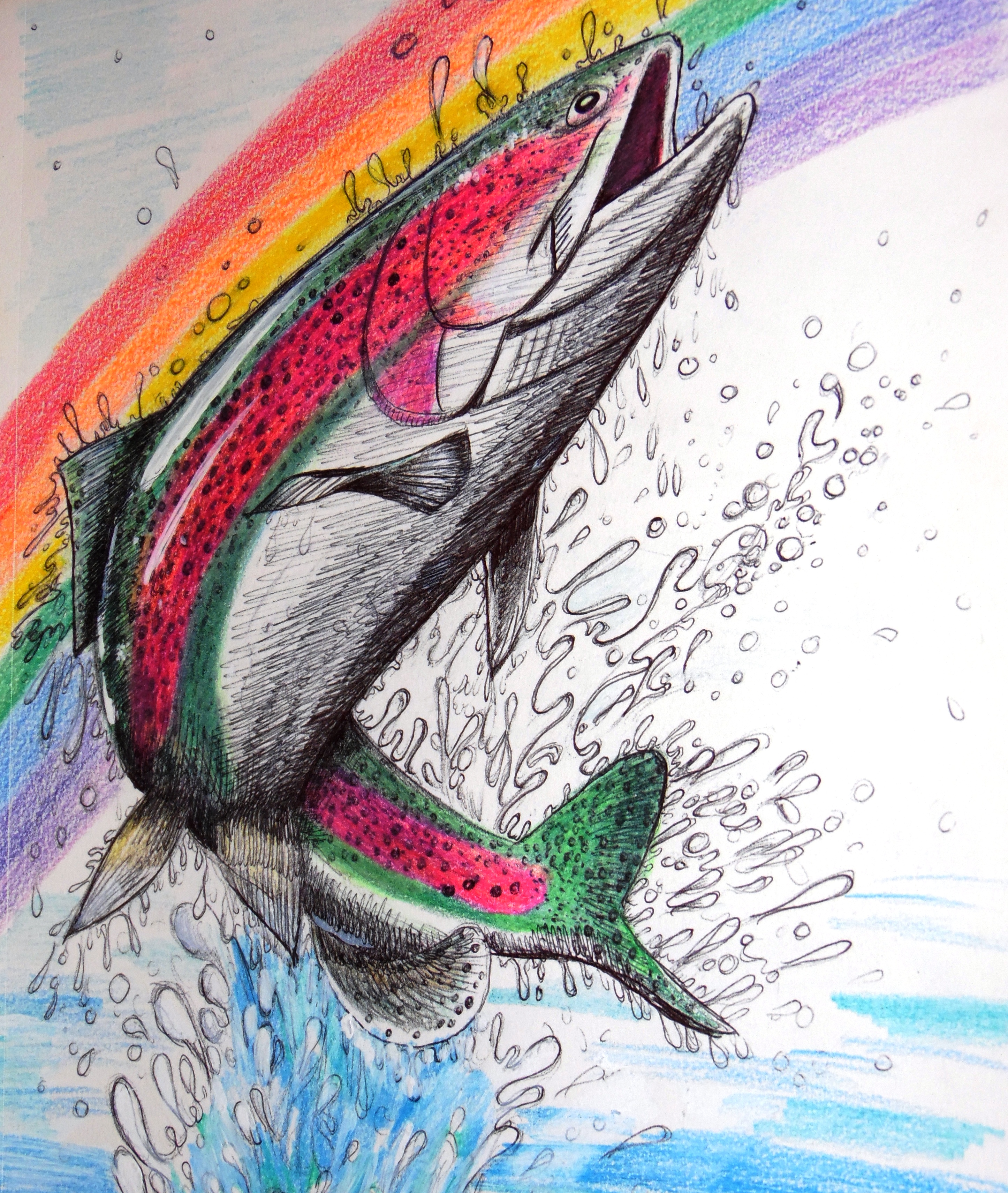 While paint and pencil are his favorite mediums to work with, Bugarin is very experimental with many other mediums as well. He sees art in objects others would overlook. He carves walking sticks from branches he finds while hiking. He also finds ways to repurpose household items into art instead of throwing them away.