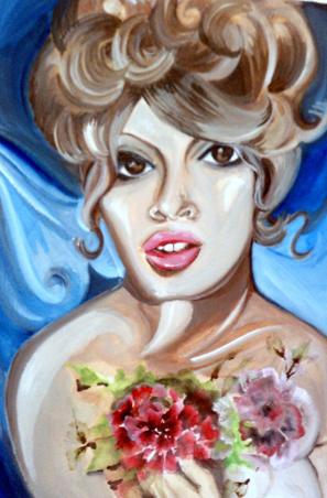 The 1960’s and 1970’s have been influential to my art. I am fond of movie stars from other eras, and they have been an immense influence in my stylistic portraits. Music and certain European artists have also been influential. Especially Morrissey, his lyrics are many times about the very subjects and time periods that I paint. I painted a girl with an elongated cigarette for instance, she is turned slightly to the left and is looking over her shoulder. This was influenced by the cover art on a cd of Morrissey’s called “Louder Than Bombs,” it is an image of Sheila Delaney, a 1950’s writer most known for a play called; “A Taste of Honey.”