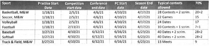 As of now the Spring semester is being scheduled to hold “two segments.” The first segment would include Fall sports such as basketball and then with slight overlap the second segment would begin in the latter portion of the semester with the standard Spring Sports such as baseball.